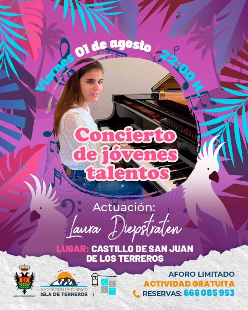 Bienvenidos al Concierto de Jóvenes Talentos de San Juan de los Terreros, una cita con la música, la pasión y el futuro. Esta noche, tenemos el honor de presentar a jóvenes artistas que, con esfuerzo, dedicación y un enorme talento, dan sus primeros pasos en el mundo de la interpretación musical. En este escenario se mezclan la ilusión, el aprendizaje y el arte, regalándonos momentos únicos. Acompañémosles con nuestro aplauso y admiración, porque hoy somos testigos del inicio de grandes caminos.
